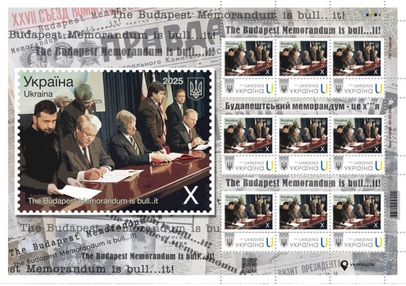 Ukraine 2025 Budapest Memorandum is bull...it! Limited edition block / sheetlet of 9 stamps MNH