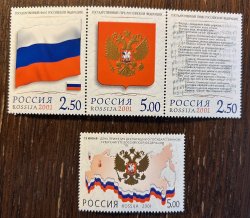 Russia 2001 10th of Independence State symbols Set of 3 stamps in strip MNH