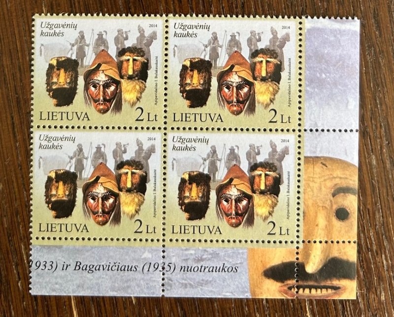 Lithuania 2014 Shrove Tuesday Masks Bottom corner quarter block 2x2 MNH