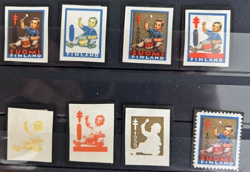 Finland 1939 Christmas charity stamp LaPe # 19 RARE colour proof set with original stamp MH (*)