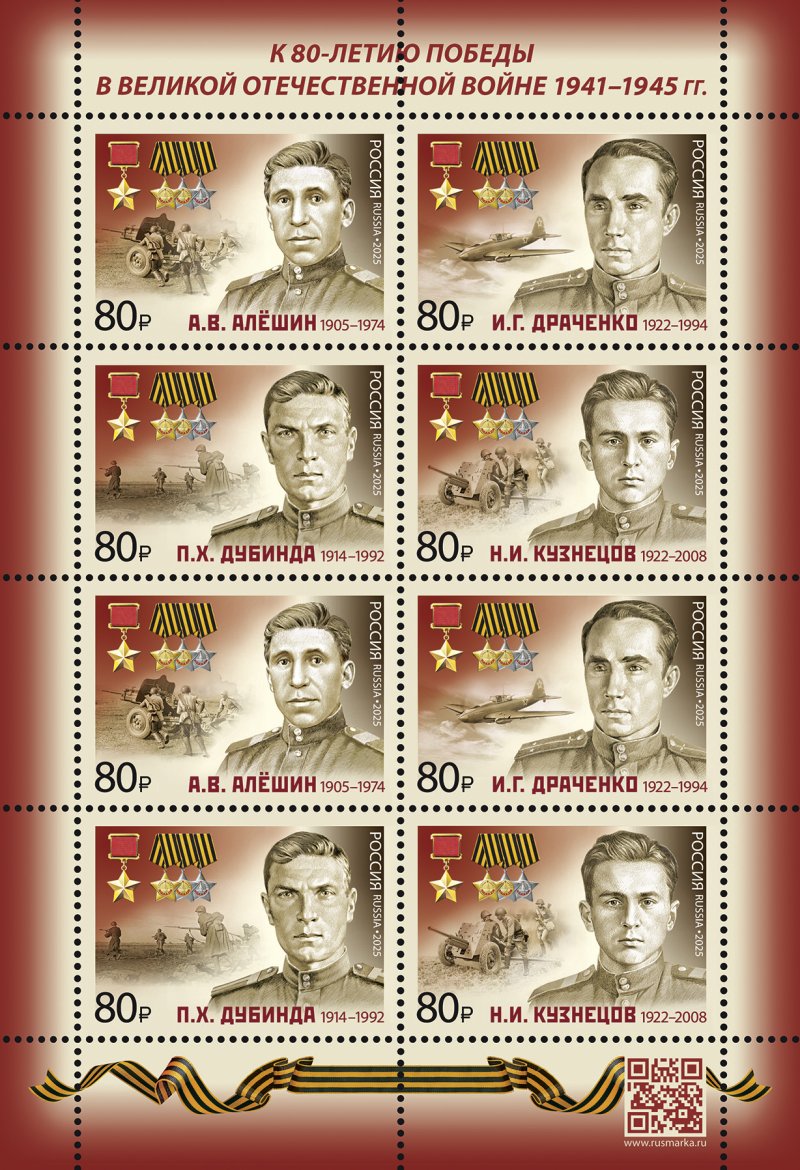 Russia 2025 WWII Full Cavaliers of the Order of Glory - Heroes of the Soviet Union Sheetlet MNH