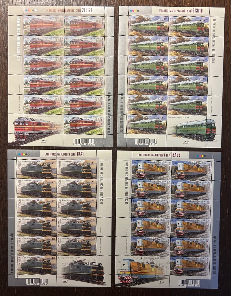 Ukraine 2009 Railway locomotives Trains Set of 4 stamps with labels MNH
