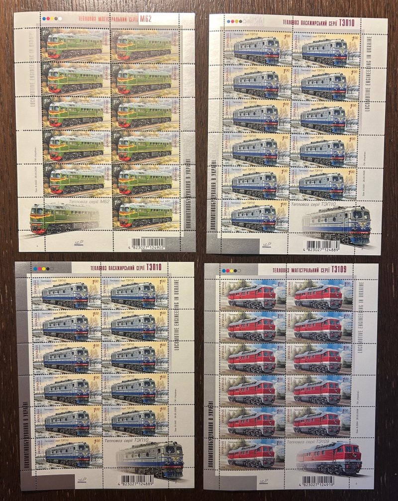 Ukraine 2008 Railway locomotives Trains Set of 4 stamps with labels MNH