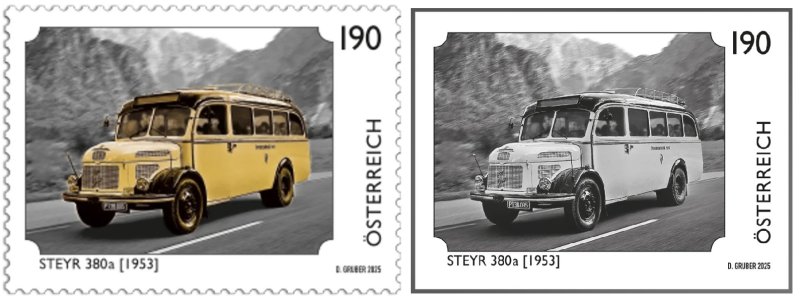 Austria 2025 Transport Bus Steyr 380a Set of stamp and limited blackprint proof MNH