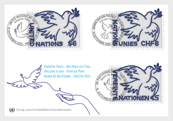 UNO 3 Post offices 2025 The dove of peace Joint issue special stamps set MNH
