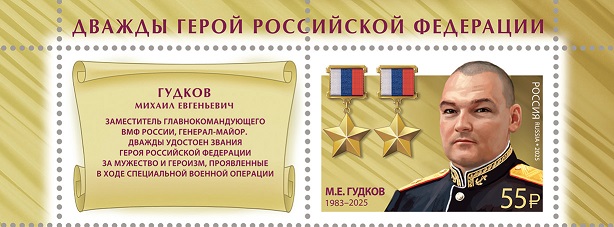 Russia 2025 Gudkov twice "Hero" of the Russian Federation Stamp with label MNH