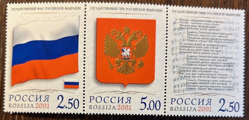 Russia 2001 10th of Independence State symbols Set of 3 stamps in strip MNH