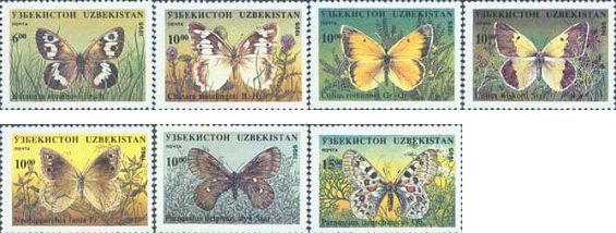 Uzbekistan 1995 Fauna Butterflies Set of 7 stamps and block MNH