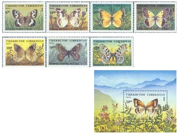 Uzbekistan 1995 Fauna Butterflies Set of 7 stamps MNH