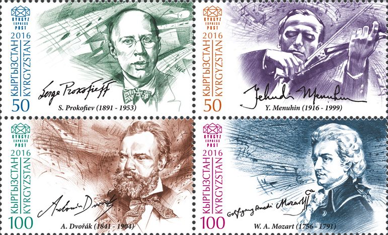 Home|Stamps by country: ex-USSR countries, Asia: Kyrgyzstan|Stamps by topics: Art: Music|Stamps by topics: Excellent people, personalities: Musicians, composers