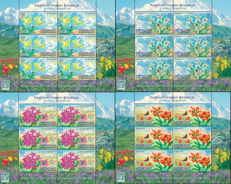 Kyrgyzstan 2016 Flowers and insects Set of 4 sheetlets MNH