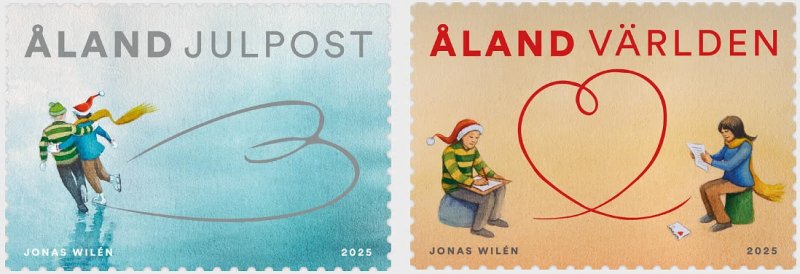 Aland Finland 2025 Christmas Set of 2 sheetlets with types labels MNH
