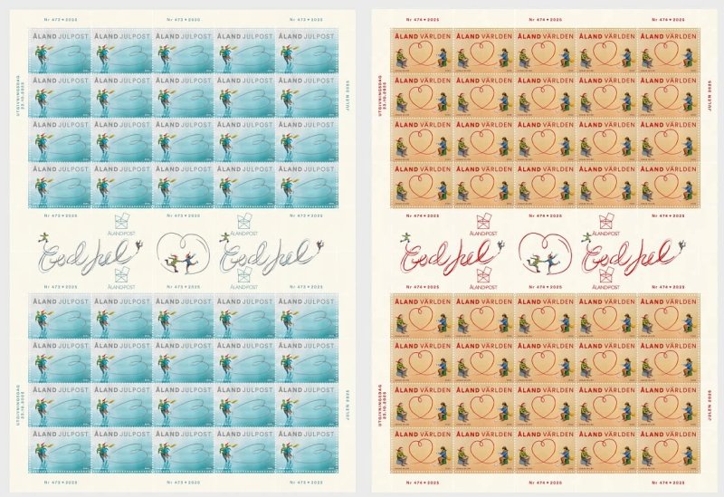 Aland Finland 2025 Christmas Set of 2 sheetlets with types labels MNH