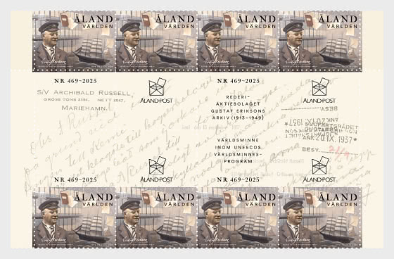 Aland Finland 2025 UNESCO Gustaf Erikson Shipping Company archives Block of 8 stamps and all labels MNH