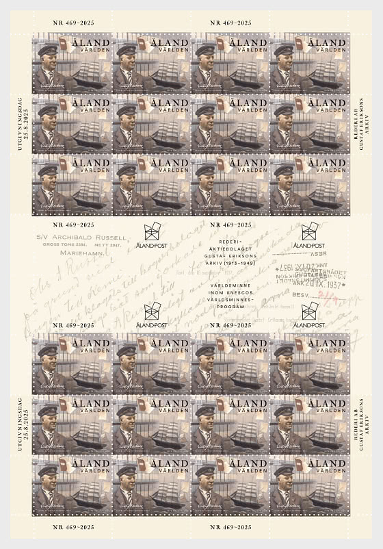 Aland Finland 2025 UNESCO Gustaf Erikson Shipping Company archives Sheetlet with labels MNH