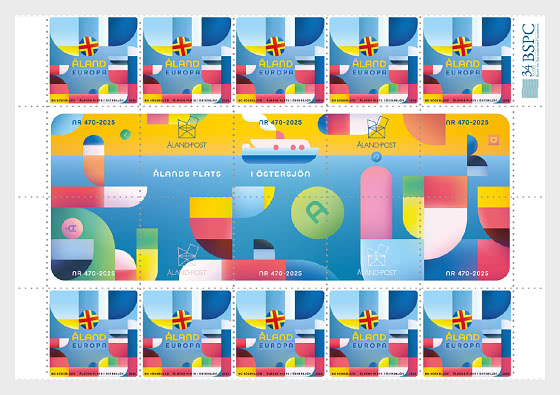 Aland Finland 2025 Aland’s Position In The Baltic Sea Block of 10 stamps and all labels MNH