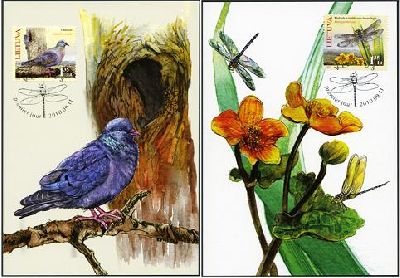 Lithuania Litauen Lituanie 2010 Red Book Birds Insects Dove Dragonfly strip of 2 stamps MNH