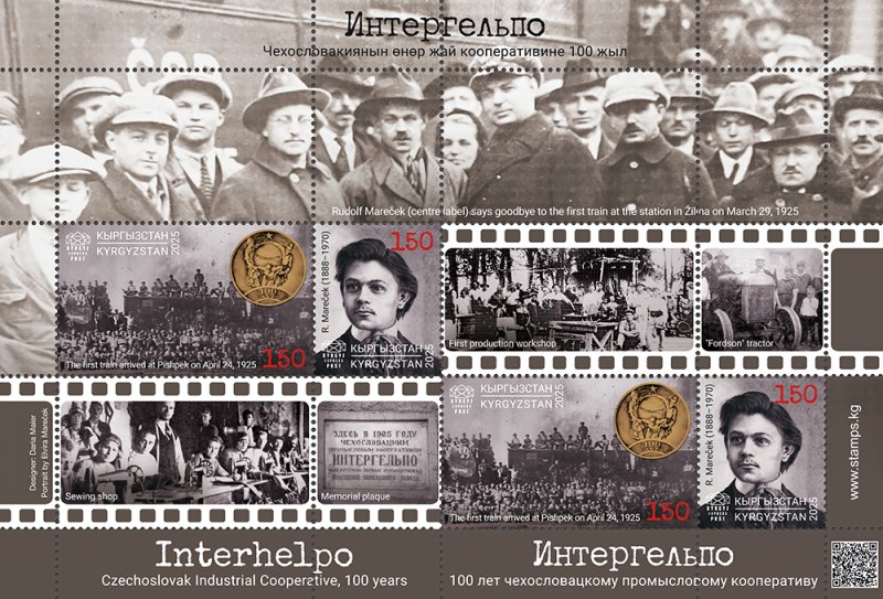 Kyrgyzstan 2025 Interhelpo Czechoslovak Industrial Cooperative 100 ann Trains Cinema Block with labels MNH