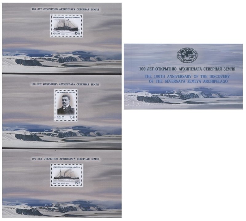 Russia 2013 Severnaya Zemlya archipelago discovery 100 ann Arctic Set of 3 special limited edition block's in booklet MNH