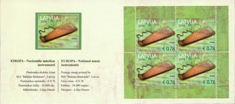 Latvia 2014 Europa CEPT Old Musical Instruments Special minisheet in exhibition booklet Essen MNH