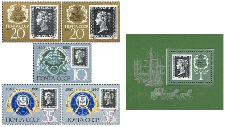 Russia USSR 1990 Black Penny 150 ann First stamp Set of 5 stamps and Block MNH