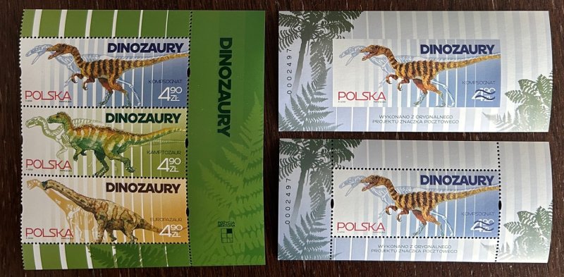 Poland 2025 Dinosaurs Set of 3 stamps in strip MNH