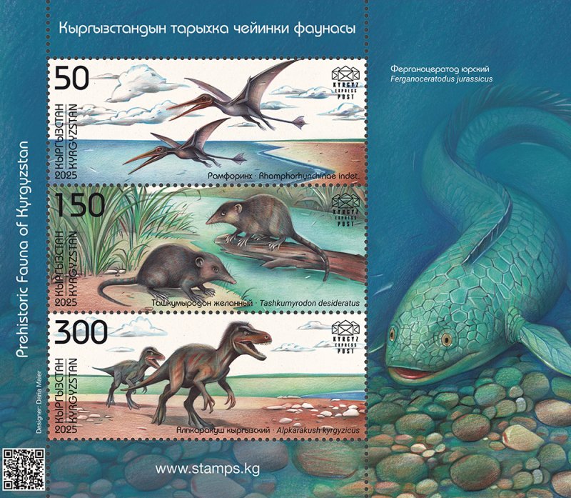 Kyrgyzstan 2025 Dinosaurs Prehistoric Fauna Set of 3 stamps in block MNH
