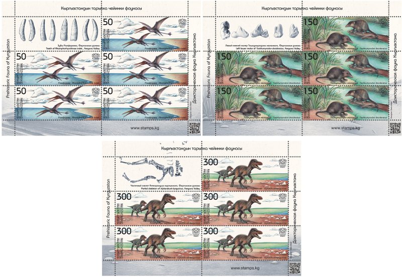 Kyrgyzstan 2025 Dinosaurs Prehistoric Fauna Set of 3 sheetlets with labels MNH