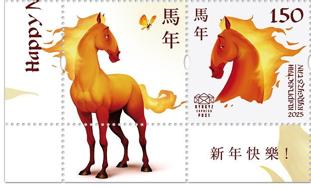 Kyrgyzstan 2025 Year of the Horse Chinese New Year Stamp with label MNH