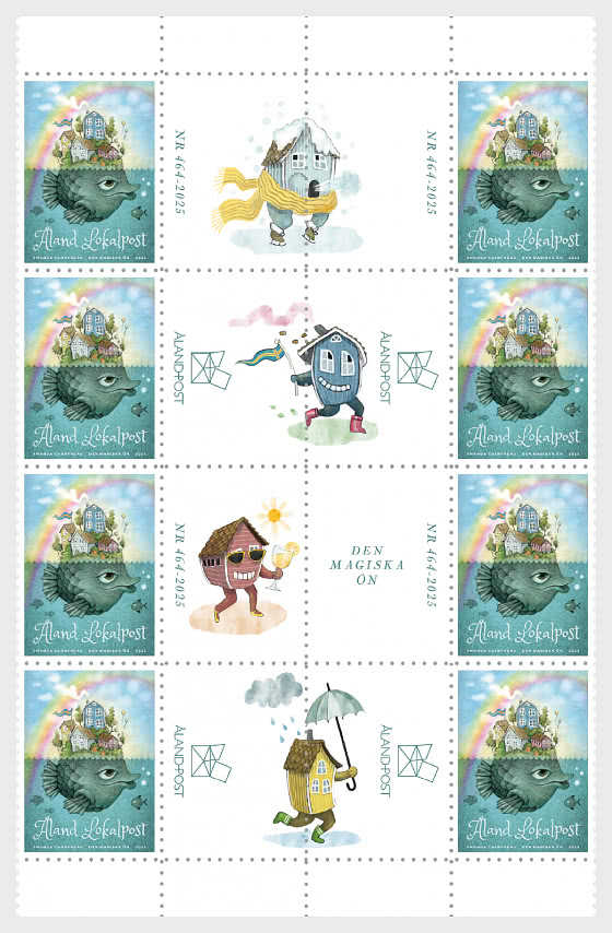 Aland Finland 2025 Magical Island Block of 8 stamps and all labels MNH