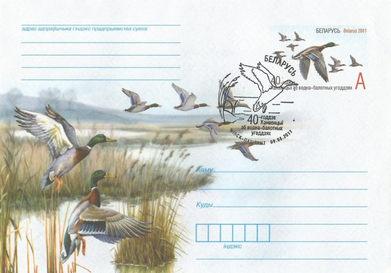 Belarus Belorussia Weissrussland 2011 Ducks Birds Convention on Wetlands 40 ann Stationary Cover MNH