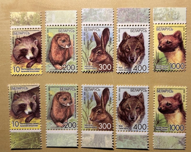 Belorussia Belarus 2008 Definitives fauna forest mammals FULL set of 10 stamps silk and normal papers MNH