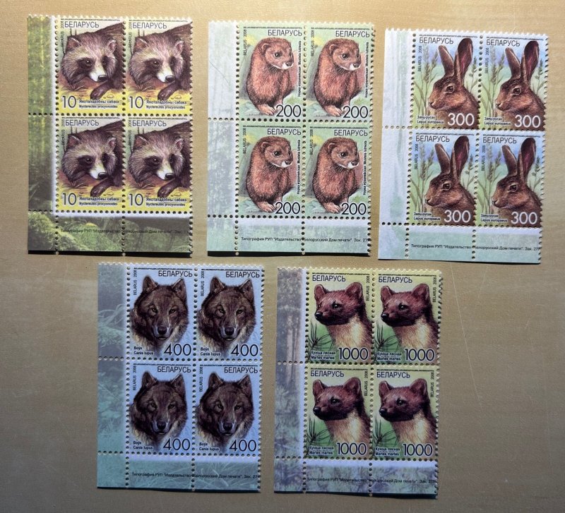 Belorussia Belarus 2008 Definitives fauna forest mammals RARE Set of 5 corner quarter-block's normal paper stamps MNH