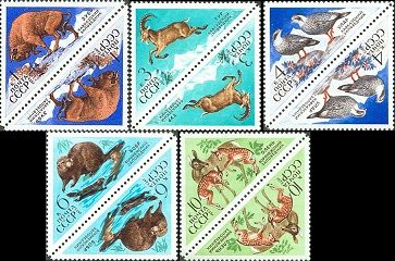 USSR Russia 1973 Rare fauna of nature reserves Mammals and birds Set of 5 stamps MNH