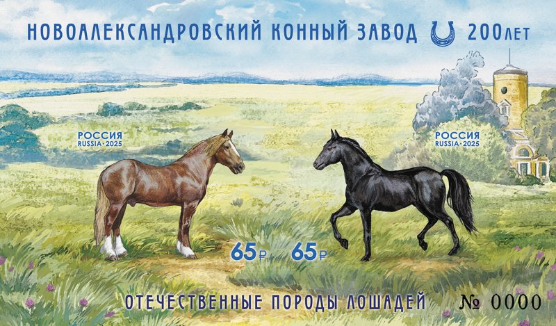Russia 2025 Horses Novoalexandrovsky stud farm 200 ann Limited edition numbered imrefrorated block MNH