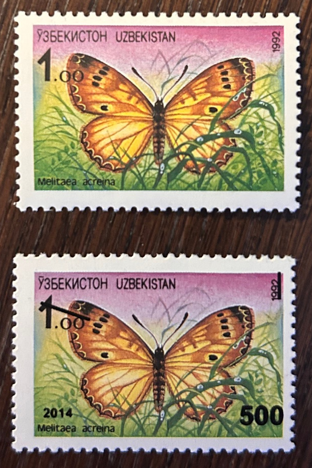 Uzbekistan Usbekistan 1992 Butterfly Melitaea acreina stamp MNH