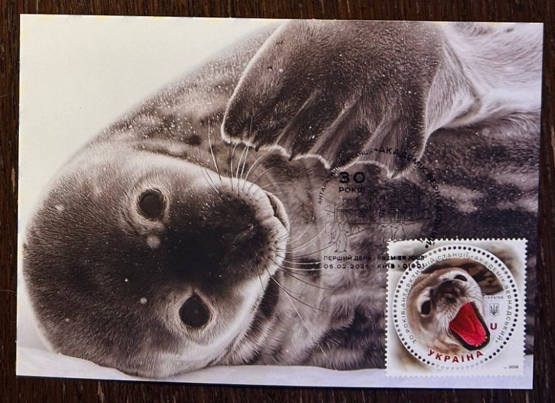 Ukraine 2026 Antarctic station Academician Vernadsky 30 ann Seal Maxicard