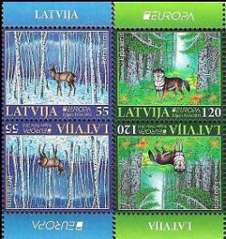 Latvia Lettland 2011 Europa CEPT Forests mammals deer and wolf set of 2 tet-beshes MNH