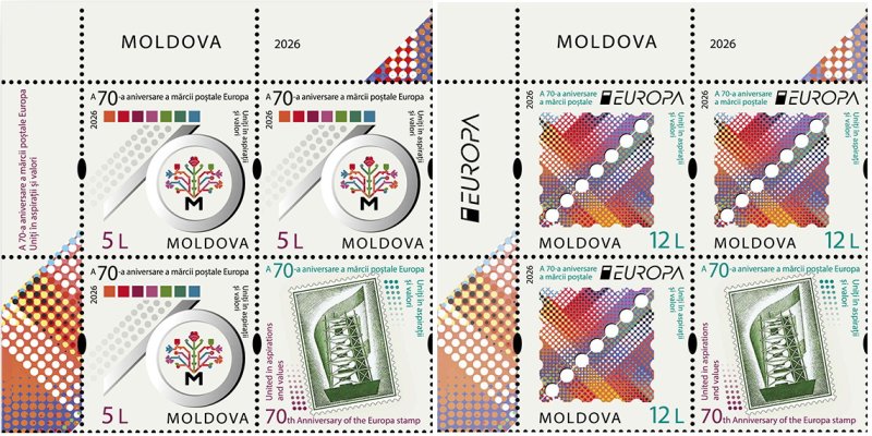 Moldova Moldavia 2026 Europa CEPT 70 ann Joint issue Set of 2 sheetlets with labels MNH