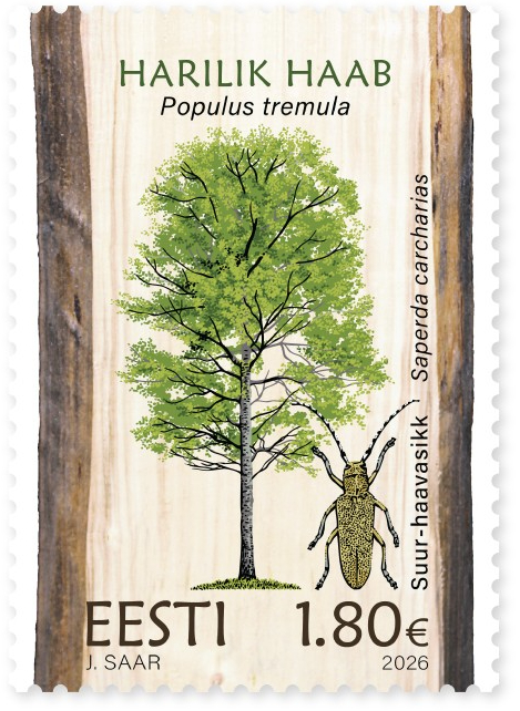 Estonia 2026 Flora and fauna trees and insects Populus tremula & Saperda carcharias FDC