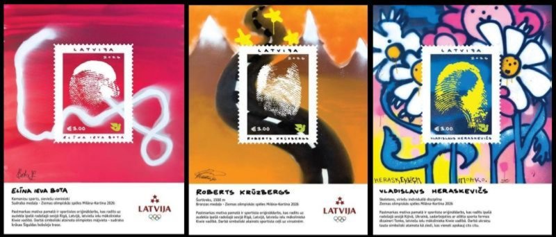 Latvia 2026 Olympic Games Milan Cortina Champions Set of 3 block's FDC's