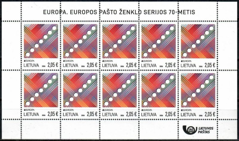 Lithuania 2026 Europa CEPT 70 ann Sheetlet MNH