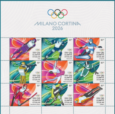 Azerbaijan 2026 Olympic Games Milan Cortina Set of 9 imperforated stamps in block MNH