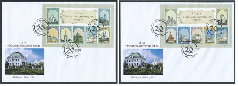 Russian occupation of Moldova (Transnistria DMR PMR) 2015 20 years of the Tiraspol-Dubossary Diocese Set of 14 stamps in 2 blocks MNH