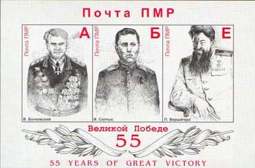 Russian occupation of Moldova Transnistria DMR 2000 55 Years of the Great Victory WWII set of 3 stamps in block MNH