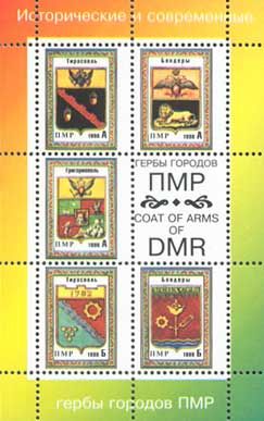 Russian occupation of Moldova DMR Transnistria 1999 Coat of Arms of Transnistrian towns set of 5 sheetlets MNH