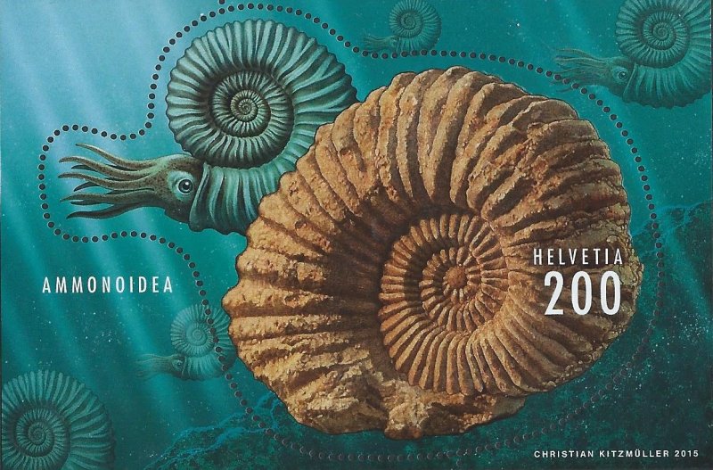 Switzerland Schweiz Suisse 2015 Ammonit Ammonoidea Fossil block MNH