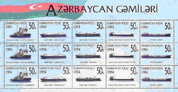 Azerbaijan 1994 Caspian Merchant Fleet Ships strip of 5 stamps MNH