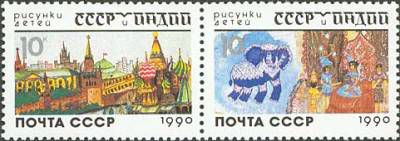 India USSR Russia 1990 Children pictures joint issue 2 strips of 2 stamps each MNH