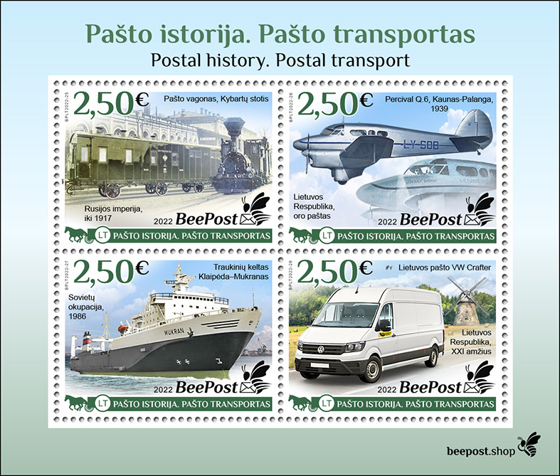 Lithuania 2022 Postal transport history BeePost Set of 4 stamps MNH